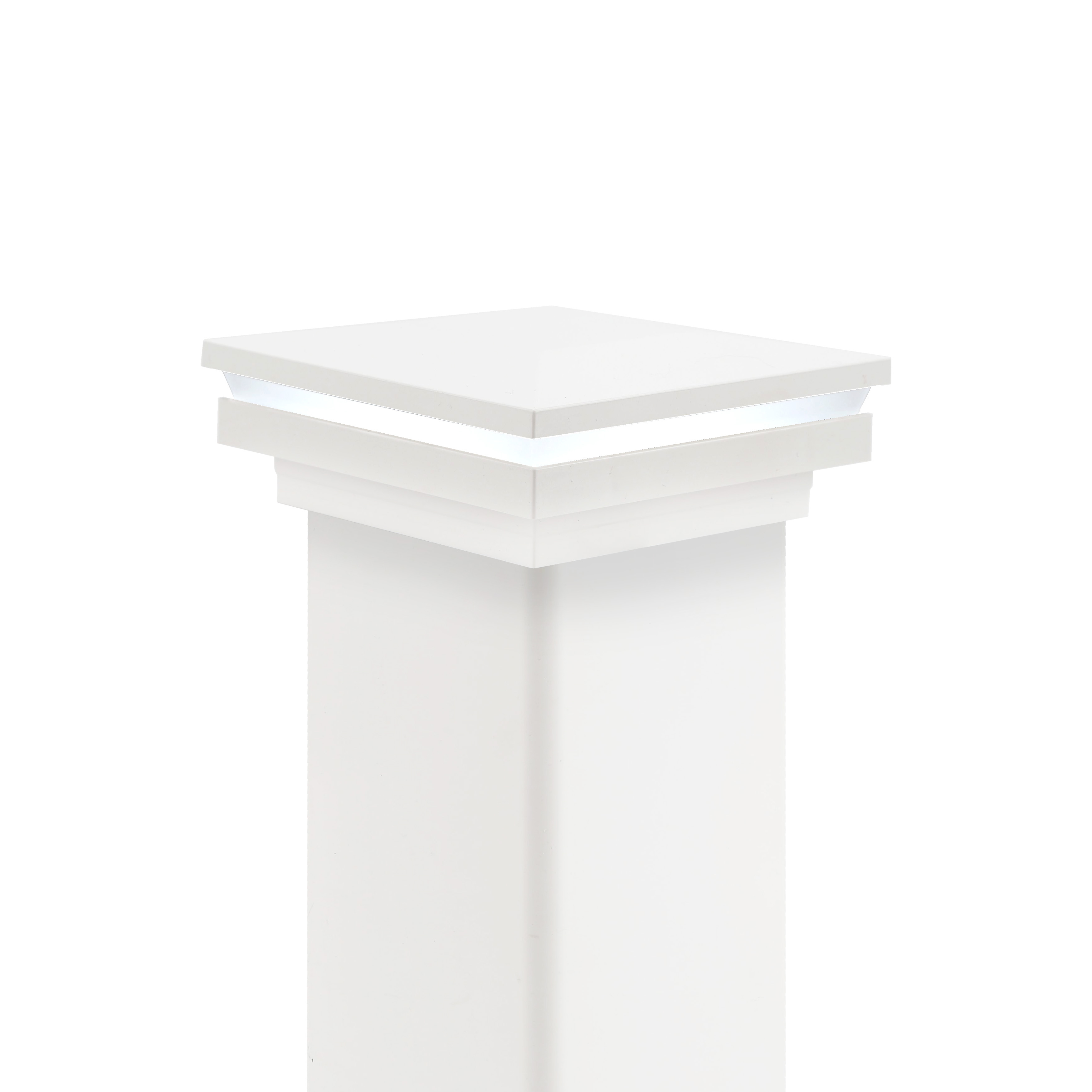Bring style and strength to your vinyl fence or vinyl railing with this Textured Matte Black low-voltage post cap featuring an Ornamental design for 2 1/2" posts. Designed to withstand harsh outdoor conditions, these post caps offer long-term, enhanced outdoor appeal for your deck, patio, or property. The cool white color temperature of these lights will give your property a modern, new aesthetic. The wired connections ensure the caps are powered throughout the entire night, creating a gorgeous ambience year-round.