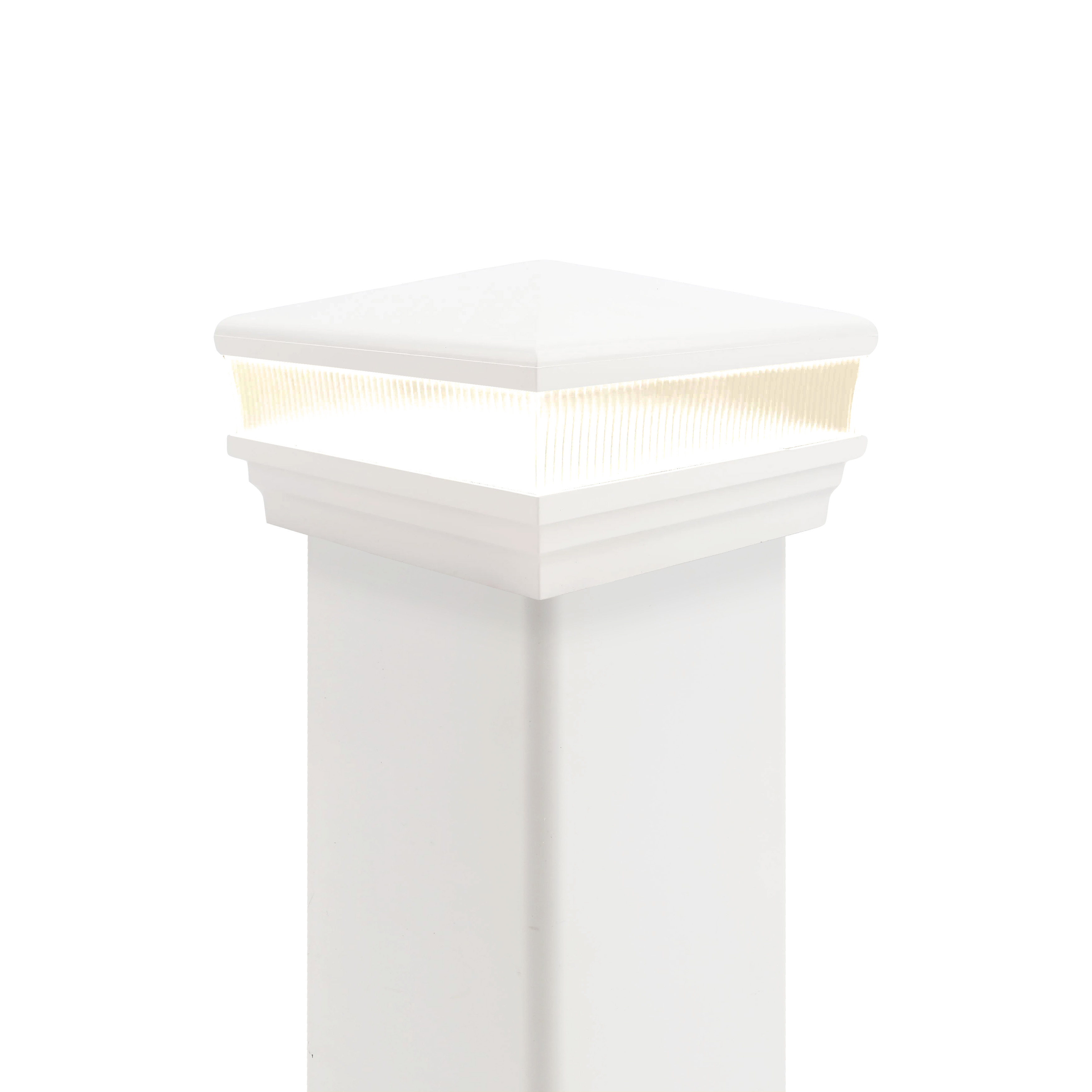 Add a touch of light to your outdoor space with this Antique Copper low-voltage post cap, designed in Neptune style for 4" posts. Being a low-voltage post cap, this decorative vinyl fence topper lights up in the evening with wired connections that ensure brightness is optimal and lasts throughout the night. Your yard will be given an aesthetic makeover when you use these post caps for your vinyl fence or vinyl railing.
