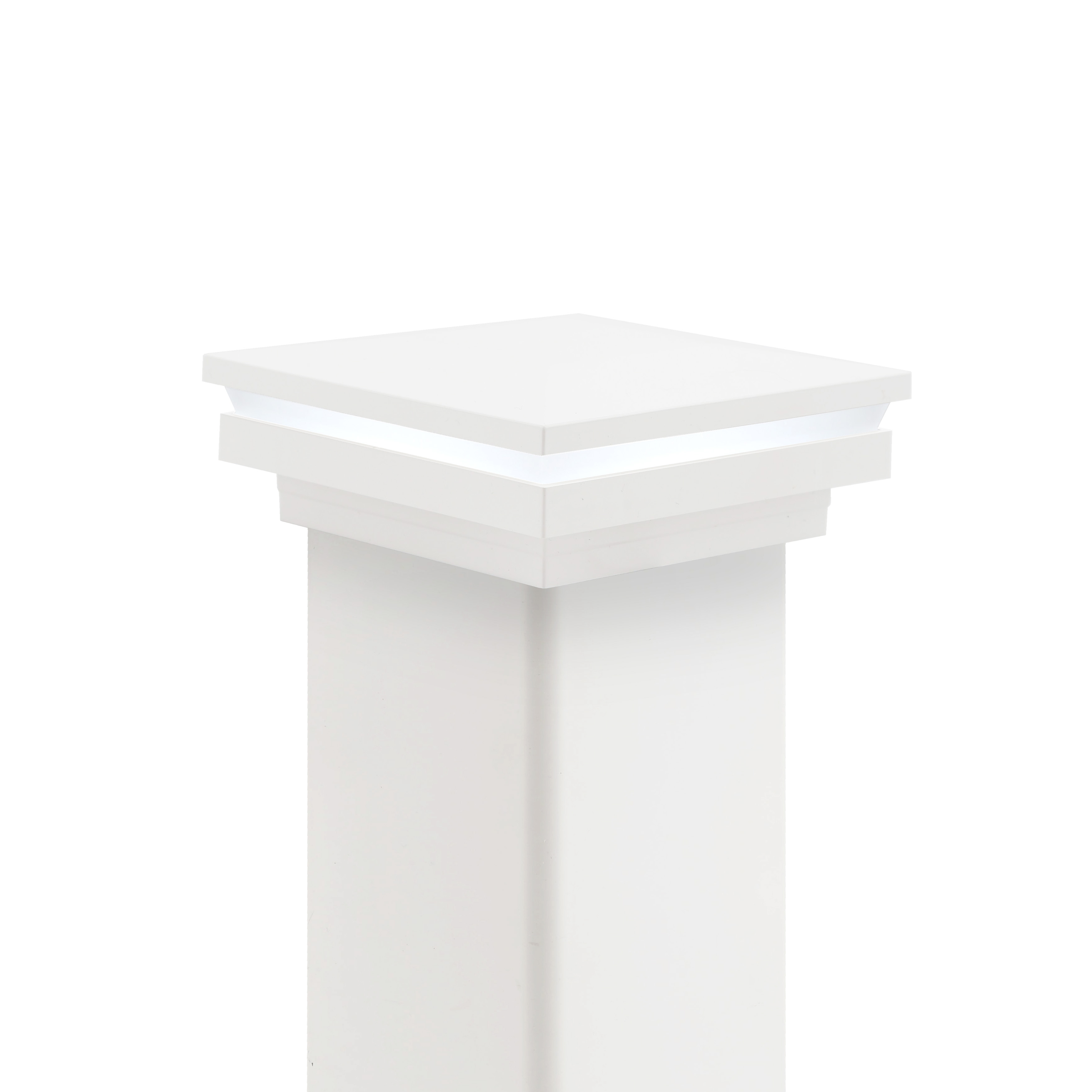 4" x 4" Ornamental Low Voltage (Cool White LED) Lighted Combo Vinyl Post Cap - White