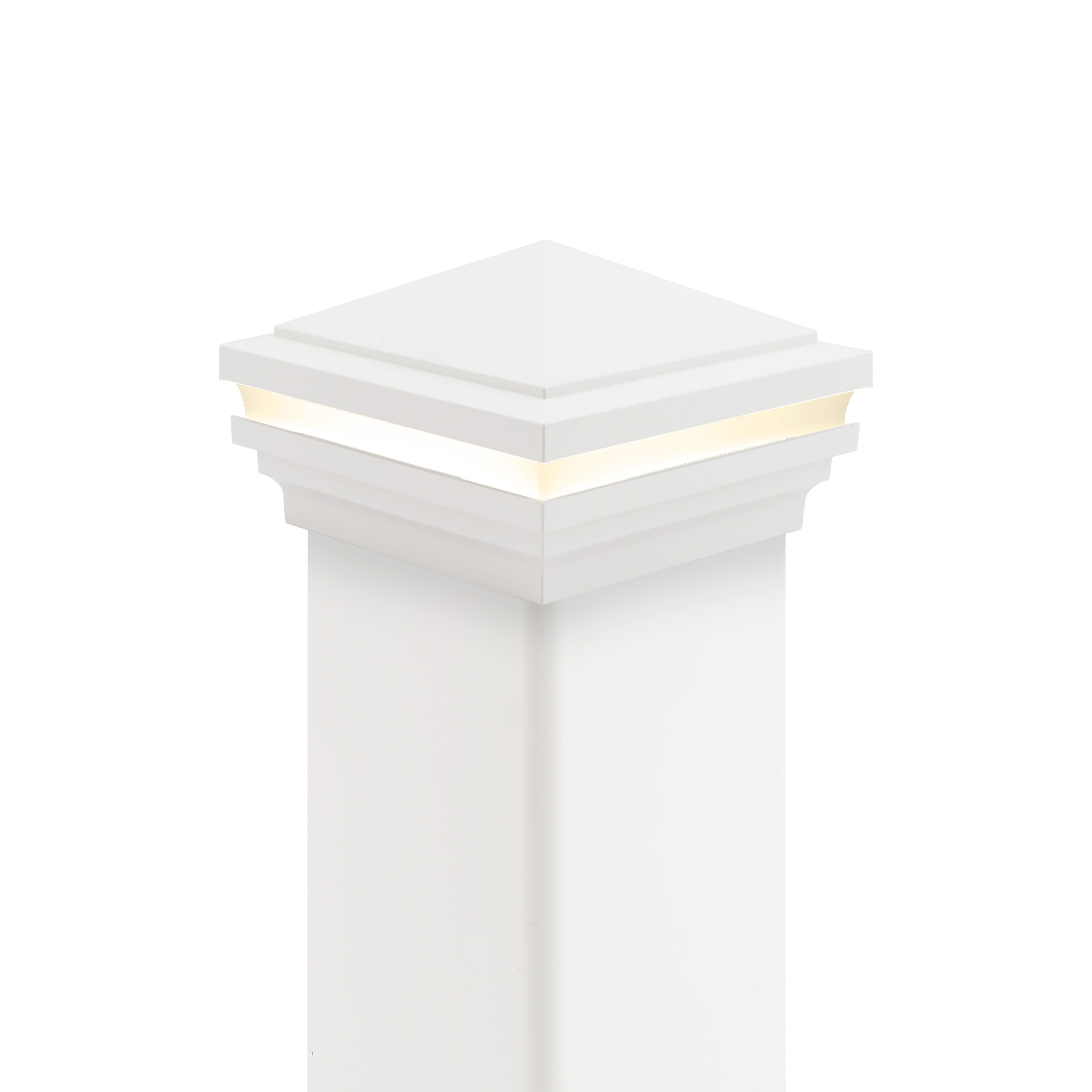 Light up your property with this Antique Brown low-voltage post cap, featuring a Haven design for 5" posts, guaranteed to withstand all seasons. Your outdoor space will be instantly transformed. These low-voltage post caps will light up in the evening thanks to the wired connections that run back to a power source, ensuring long-lasting light. The warm, gentle glow of the 3000 Kelvin color temperature provides an inviting appeal for your vinyl fence or vinyl railing.