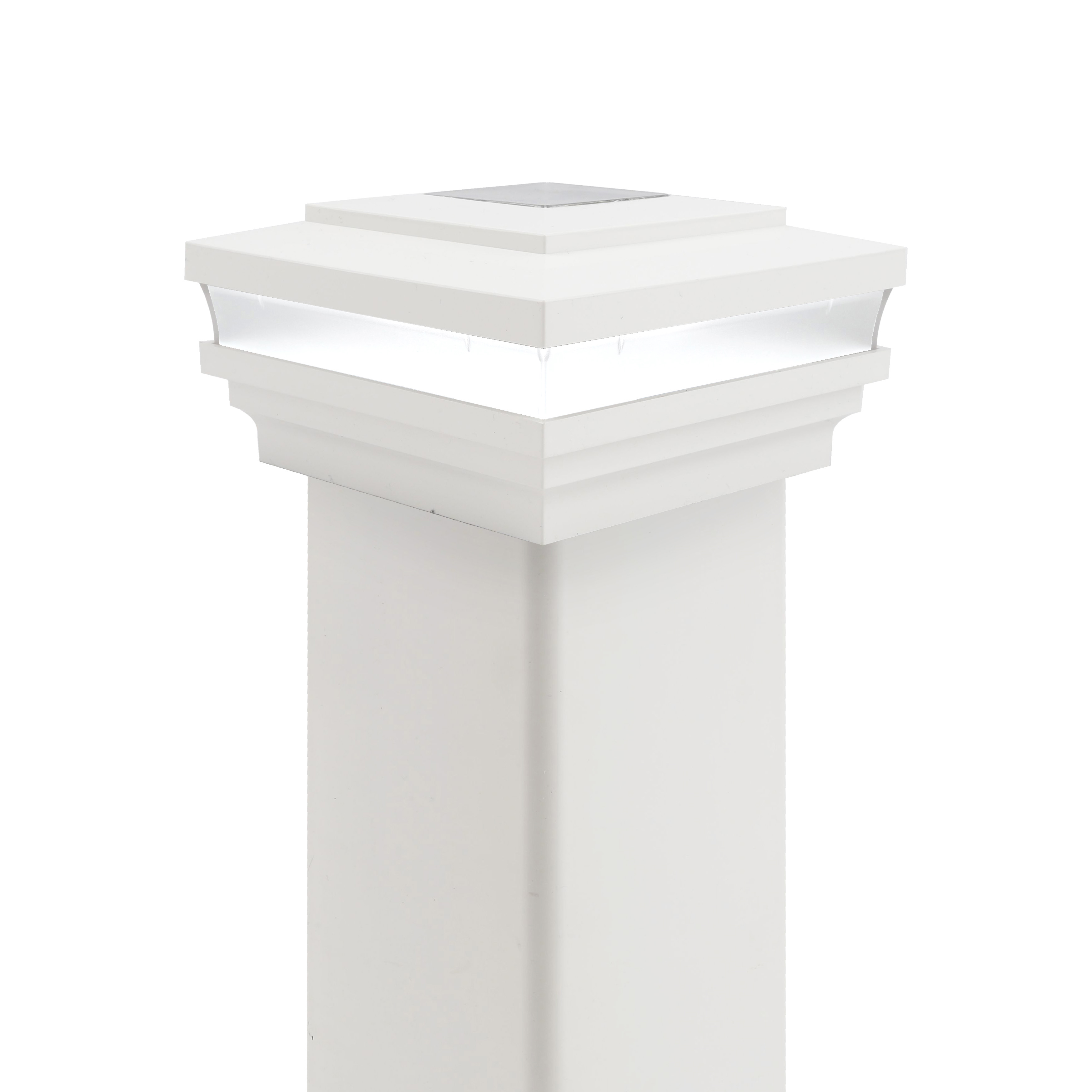 Enhance your outdoor living space with this solar post cap in Antique Gray, designed in a Cape May style, made to fit 4" posts. Solar post caps are lighted post toppers that protect the interior of vinyl fence posts while providing energy-efficient ambient lighting. Create a gorgeous outdoor atmosphere year-round, all while keeping your energy bills low.